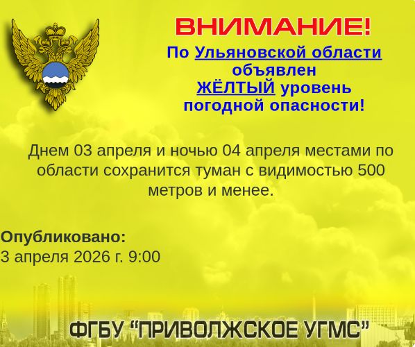 Сегодня днем, 3 апреля, а также ночью 4 апреля местами по Ульяновской области сохранится туман с видимостью 500 метров и менее.