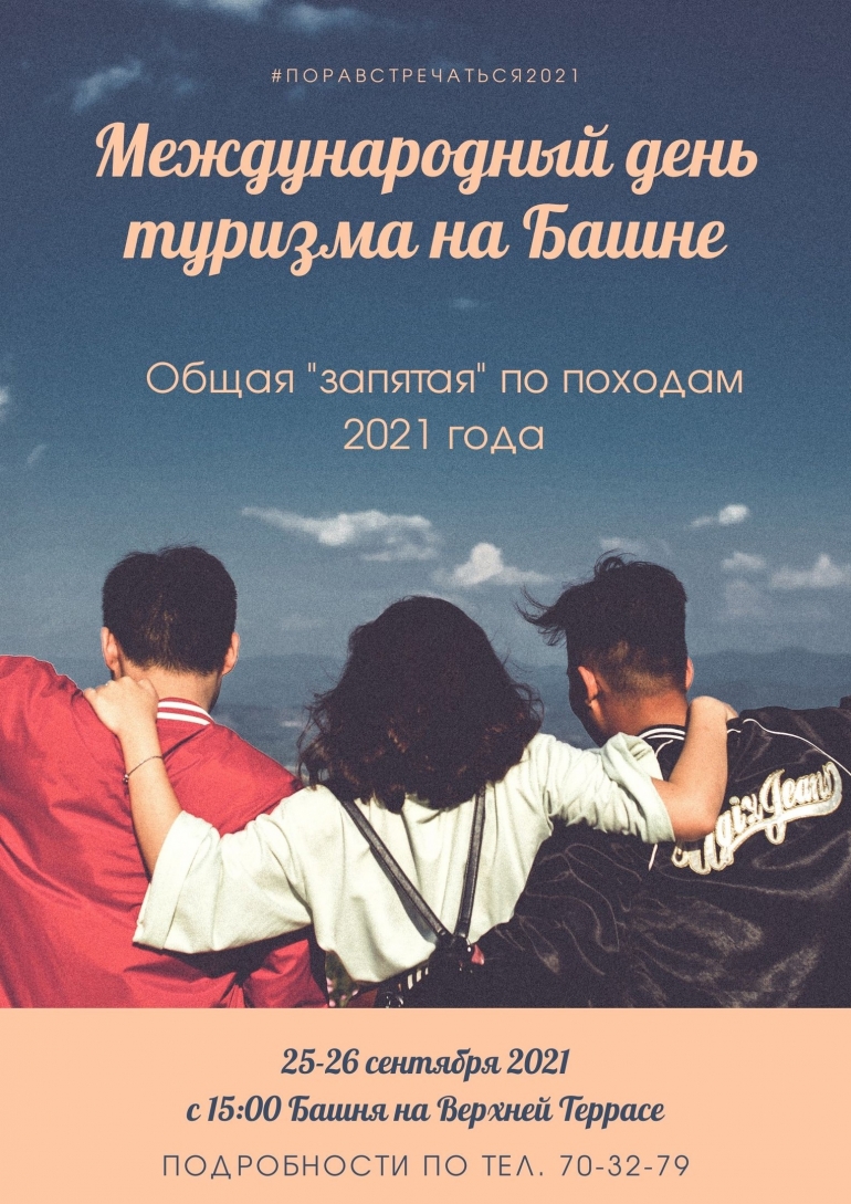 25-26 сентября в 15.00 на поляне у Башни (Верхняя терраса) пройдёт традиционная ежегодная встреча туристов и путешественников, приуроченная к событию «Международный День Туризма на Башне». Формат мероприятия: каждый, кто совершал поход в этом году, может выступить с презентацией (до 15 минут) и показать самые интересные фото-, видеоматериалы. Предварительная запись обязательна, справки по телефону: +7 (927) 270-32-79. Подробнее тут.
