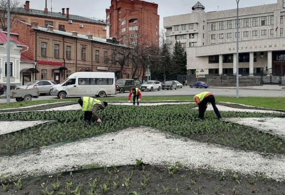 В Ульяновске специалисты Горзеленхоза начали рыхлить землю на цветниках с тюльпанами. Первые работы прошли у Центробанка.