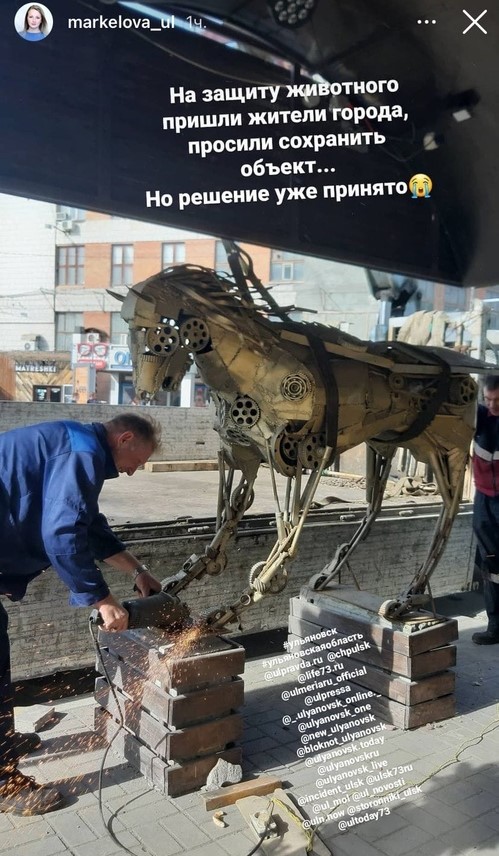 Несколько дней назад мы писали, что киберлошадь у бара на Карла Маркса уедет к «ценителям». Ульяновские власти хотят демонтировать арт-объект по решению Арбитражного суда.