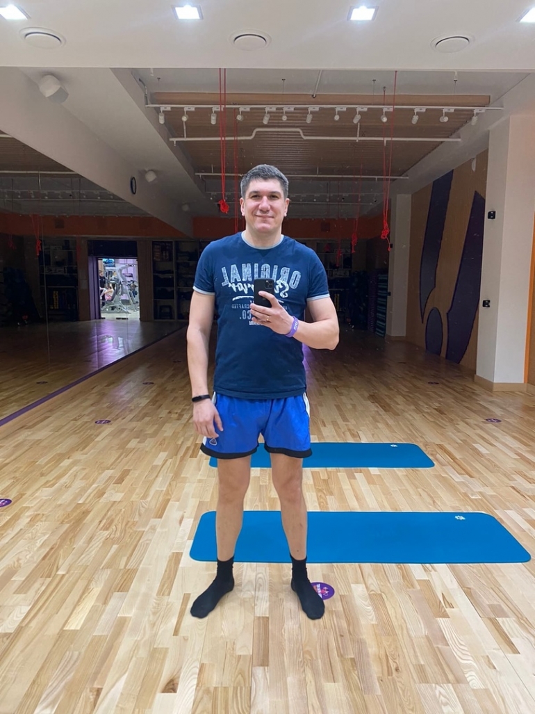 - Я приболел на прошлой неделе. Попробовал потренироваться в воскресенье, но поднялась температура. Взял паузу. А завтра - обязательно на тренировку. Системно занимаюсь улучшением состояния своего здоровья и тела - силовые нагрузки, растяжки, элементы кикбоксинга, плавание.