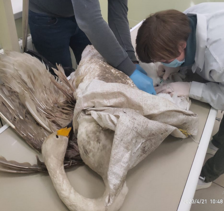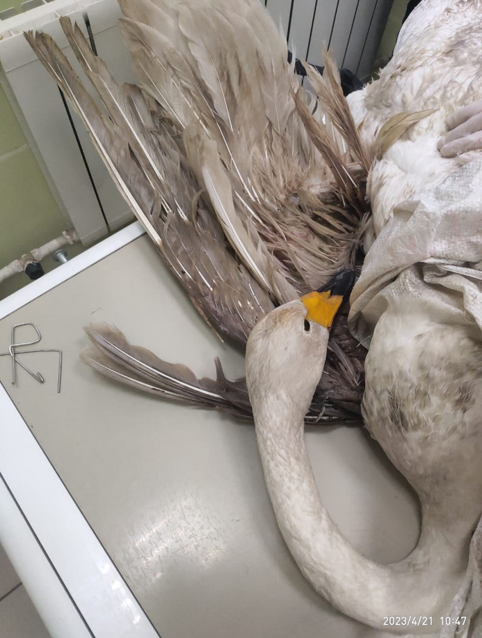 - Специалисты Симбирского центра ветеринарии совместно с охотпользователями выехали на место. Оказалось, что лебедь уже доплыл до соседнего села, где его и обнаружили. Усилиями неравнодушных людей раненая птица была доставлена в Фонд «Флора и Лавра», за счет средств которого был проведен осмотр, взяты анализы, сделаны рентгенолгические снимки. Они показали косой оскольчатый перелом плечевой кости левого крыла, - рассказали в Агентстве.