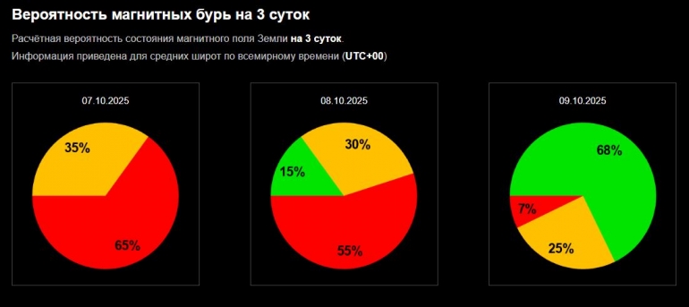 - вероятность магнитной бури — около 65%,