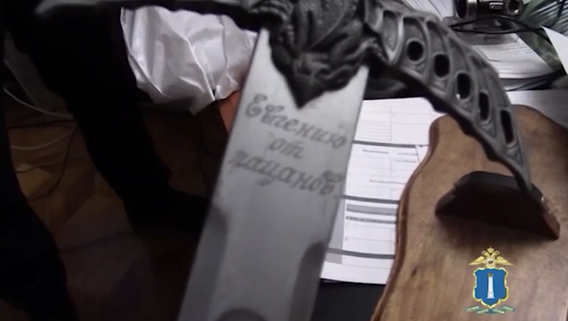 Во время обысков дома у Иванова нашли примечательные артефакты: доспехи, меч с гравировкой «УЗТС» с одной стороны и подписью — с другой (Евгению от пацанов).