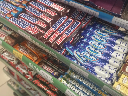 Полицейские установили, что 29 января в течение 20 минут - с 13.15 до 13.35 - покупатель вынес из двух соседних магазинов 89 плиток шоколада различных марок.
