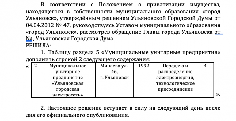 Городская Дума одобрила изменения в программу приватизации муниципального имущества Ульяновска на 2022 год и плановый период 2023 и 2024 годов. Так, в новом документе теперь числится МУП "Ульяновская городская электросеть".