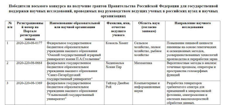 Определены победители восьмого конкурса на получение грантов Правительства РФ для государственной поддержки научных исследований, проводимых в российских вузах. В число 43 победителей вошли два ульяновских университета.