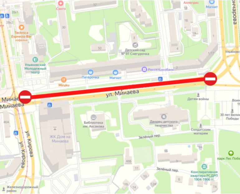 Торговля развернется на улице Минаева - от Железной Дивизии до Гончарова. В период с 3:00 до 15:00 на этом участке дороги будет перекрыто движение автотранспорта.
