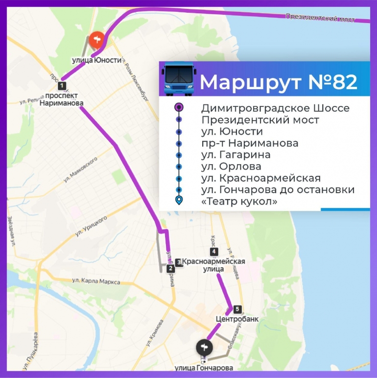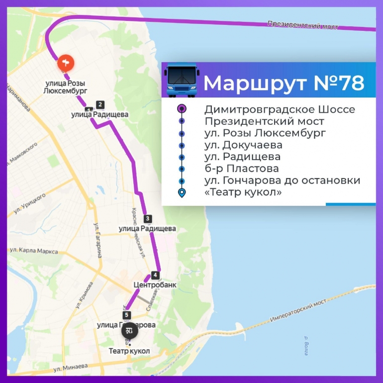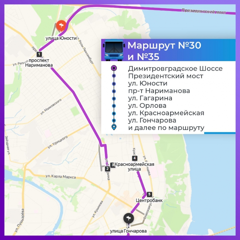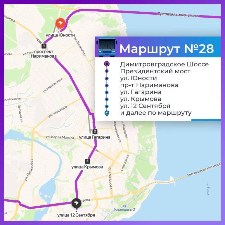 Ремонт деформационных швов продолжается. Поэтому движение по нему до 1 сентября 2025 года перекрывается с 00:00 до 24:00 — в выходные и с 23:00 до 05:00 — в будние дни. В это время общественный транспорт с правого на левый берег движется по альтернативному маршруту — после Димитровградского шоссе он сворачивает на Президентский мост.