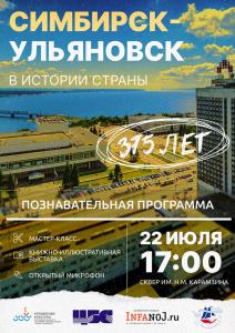 Жители и гости города познакомятся с историей возникновения и развития Симбирска–Ульяновска. Получат новые знания. Для детей организуют мастер-класс по изготовлению открытки «Мой любимый город».