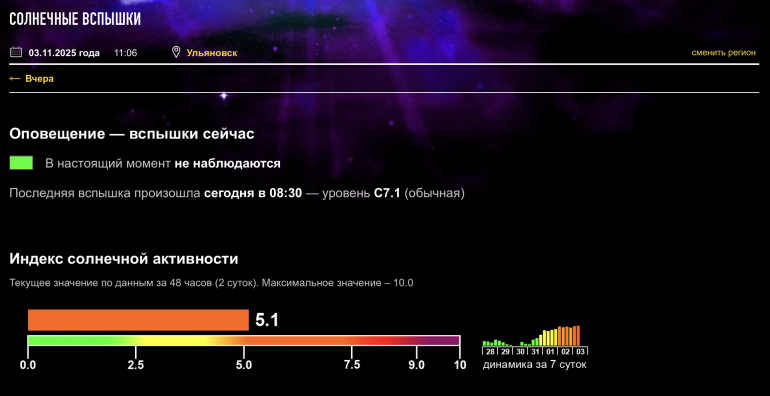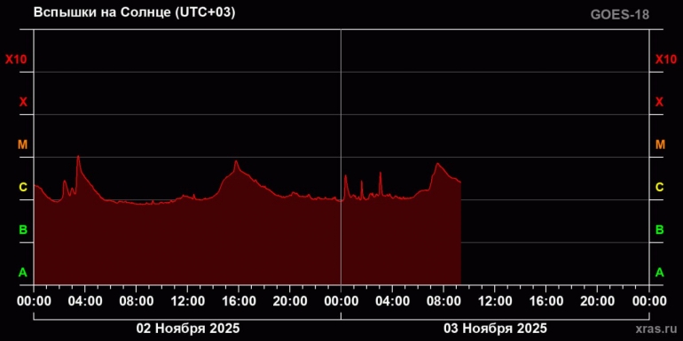 По данным Лаборатории солнечной астрономии, идет дальнейший рост вспышечной активности.