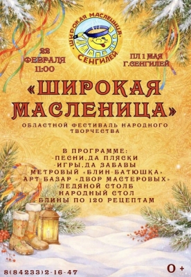 «Масленичное БЛИН-шоу»: поселения района представят тематические площадки с акцентом на традиции народов Сенгилеевской земли.
