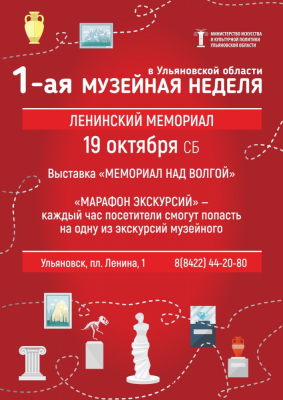 В первую «Музейную неделю в Ульяновской области» Ленинский мемориал приглашает бесплатно посетить свои площадки. Мероприятия состоятся 19 октября и реализуются в рамках национального проекта «Культура».