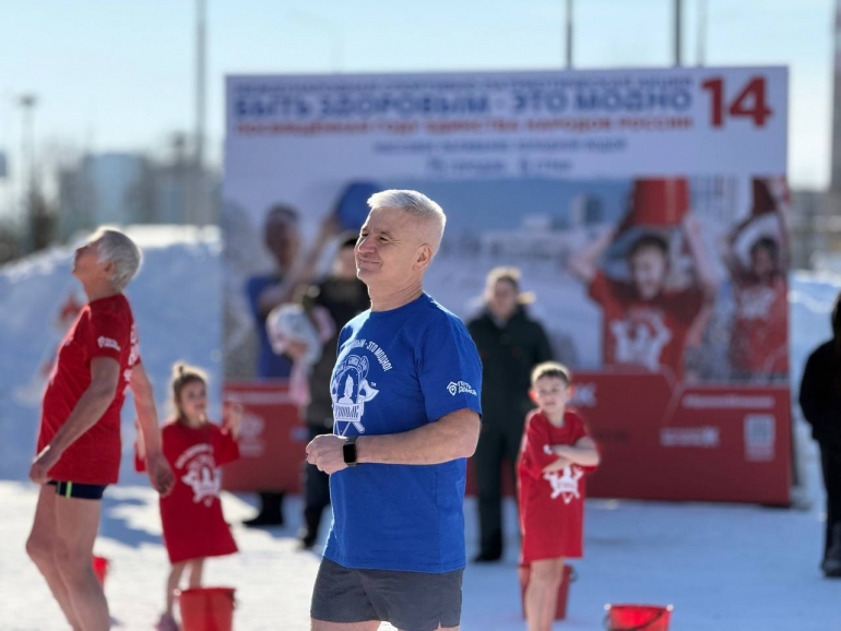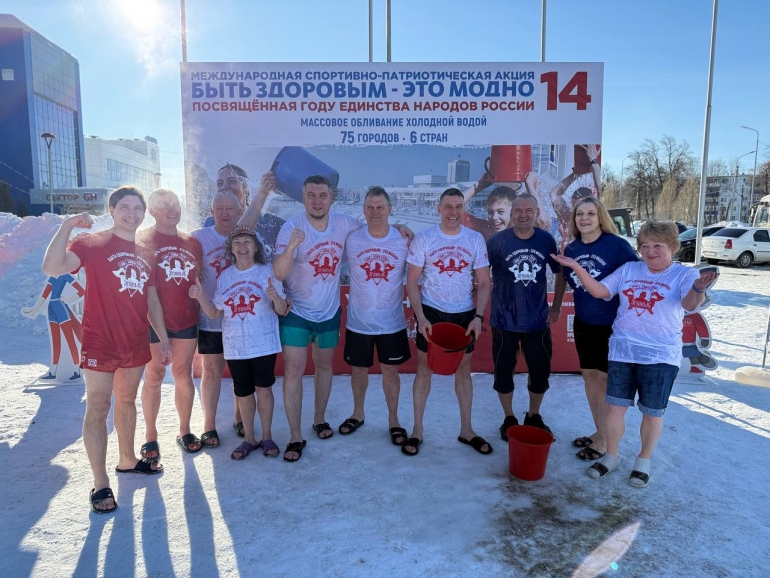 В более чем 70 городах России и 10 дружественных странах все желающие в одно и то же время облились водой на улице. Все площадки были связаны телемостом, что позволило «моржам» видеть друг друга.