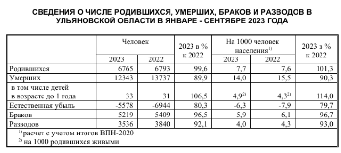 Ульяновскстат опубликовал актуальные данные о естественном движении населения за первые 9 месяцев года.