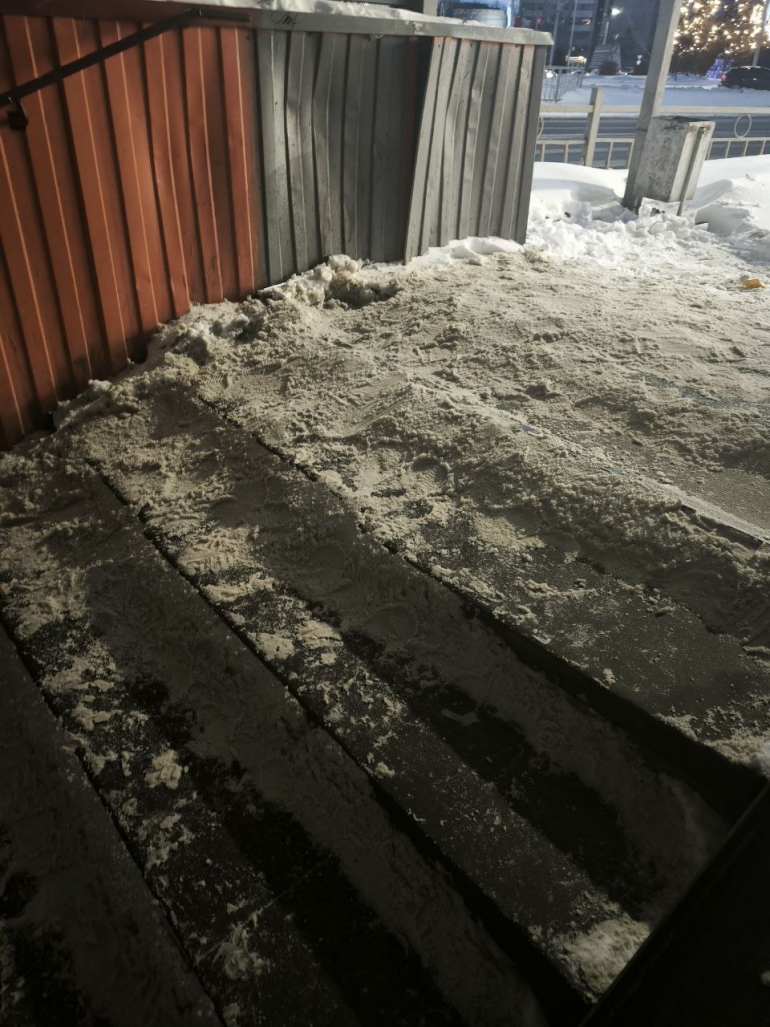 - В ужасном состоянии ступени, подпертые в некоторых местах деревянными досками. Металлические площадки у низа лестниц такие скользкие, что падают не только дети и старики, но и молодые люди. Решетки для стока воды постоянно «отпаиваются» от железных площадок и торчат вверх металлическими острыми пиками. Переход регулярно не убирается и превращается в свалку мусора, - сообщает автор поста.