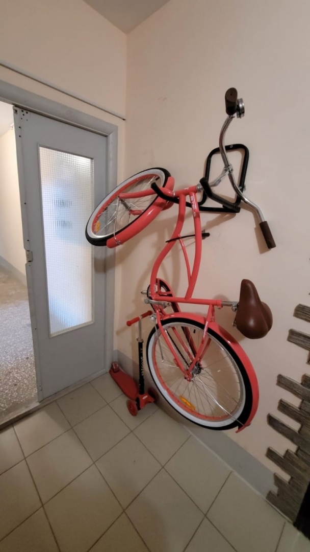 Мужчина оставил его пристёгнутым в подъезде дома на улице Тельмана.