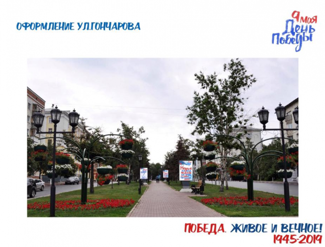 Особое внимание будет уделено оформлению улицы Гончарова, где пройдёт шествие «Бессмертный полк». Здесь празднично оформят витрины магазинов, а также здания гостиницы «Волга» и Главпочтамта.