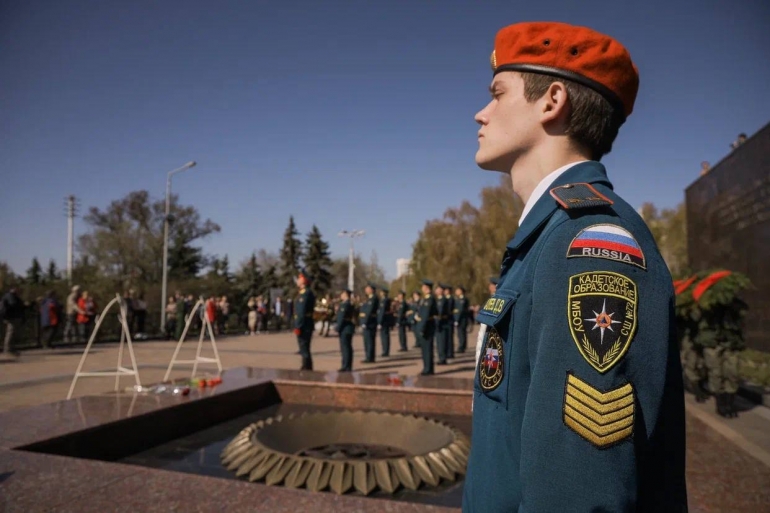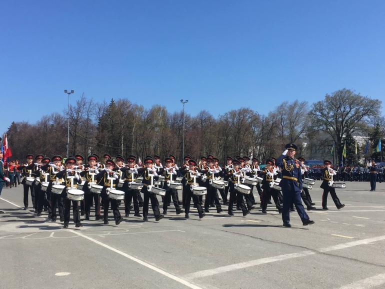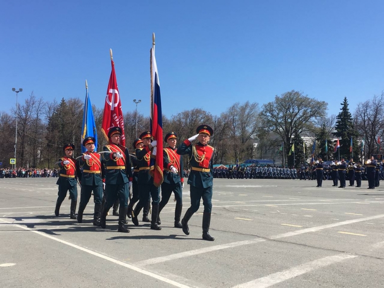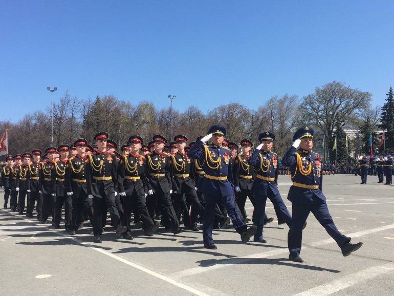 Начался парад. В нем приняли участие войска Ульяновского гарнизона, суворовцы, кадеты, сотрудники МЧС, ветераны боевых действий.