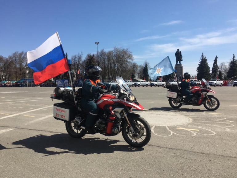 Рядом с ним шел руководитель ульяновского отделения мотоклуба «Ночные волки» Владимир Парфенов.
