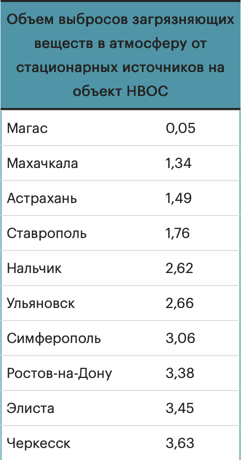 - объем выбросов загрязняющих веществ в атмосферу от стационарных источников (в среднем 33,4 т на объект НВОС) и процент их улавливания и обезвреживания (в среднем 71,5%).