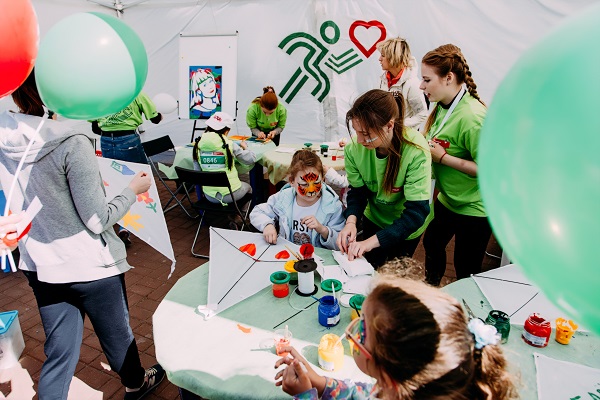 Пока бегуны разминались и готовились к забегу, их семьям тоже было чем заняться. Дети разукрашивали и запускали воздушных змеев, пускали мыльные пузыри, участвовали в мастер-классах по йоге и самообороне от ФОК «Спартак», расписывали глиняные фигурки (и себя – аквагримом), сражались в настольный футбол-хоккей и в гигантский морской бой и шашки.