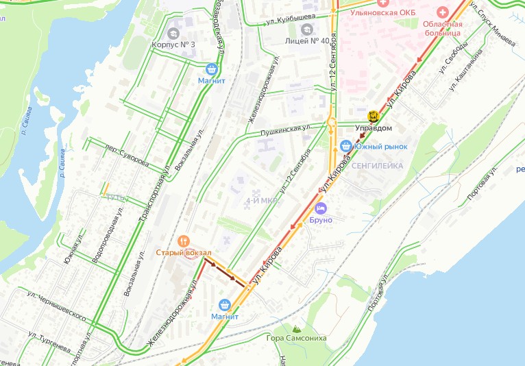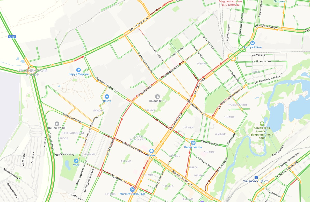 Яндекс.Карты считает, что Ульяновск стоит — пробки оценивает на девять баллов.