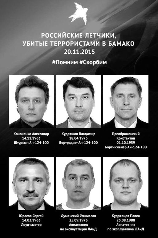 Чуть позже порталу стало известно, что 20 ноября экипаж самолета «Руслан», который накануне прибыл на Мали для осуществления грузоперевозок, спустился в ресторан отеля «Редиссон Блю» на завтрак. Экипаж с АН-124 ночевал в этом отеле.