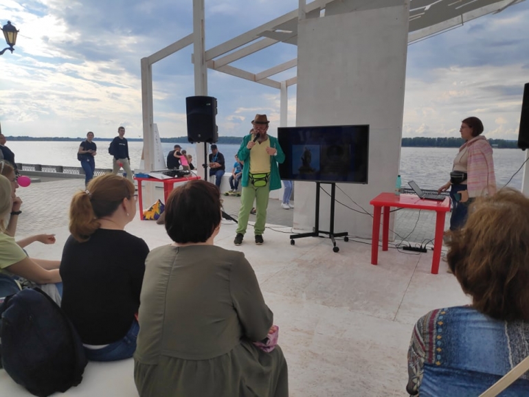 Работа стационарного павильона с экспозицией, экскурсии от профессиональных гидов с информацией об истории города-резидента «ВолгаФеста» и выступления известных людей, рассказывающих о культурных практиках и особенностях Ульяновска, дают посетителям полноценное представление о жизни города, его природном и культурном ландшафте, менталитете жителей и взаимодействии с Волгой и Свиягой, о сходствах и различиях с Самарой и другими волжскими городами.