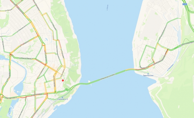 Затор на подъездах к переправе через Волгу со стороны левого берега растянулся на два с половиной километра. Димитровградское шоссе стоит до улицы Шофёров. Вероятнее всего, проблема в очередной раз возникла из-за деформационного шва, плачевное состояние которого вынуждает водителей сильно притормаживать.
