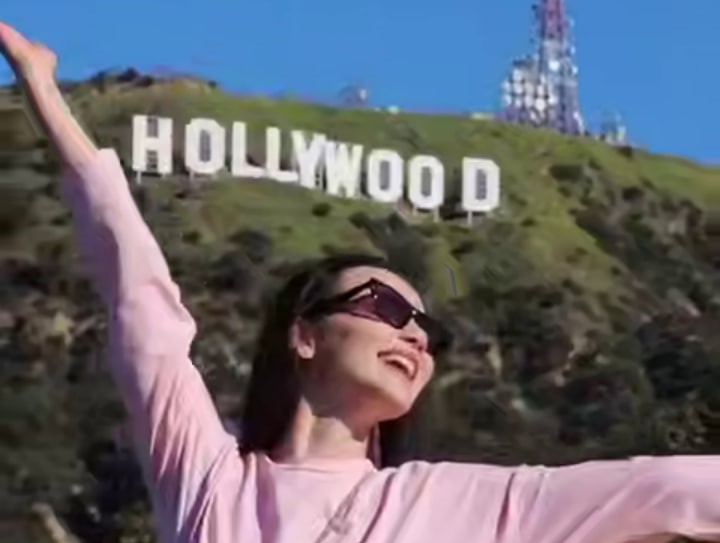 Красавица снялась на фоне тех самых голливудских букв. «Мечта №321: фото с Hollywood Sign», — подписала она ролик.