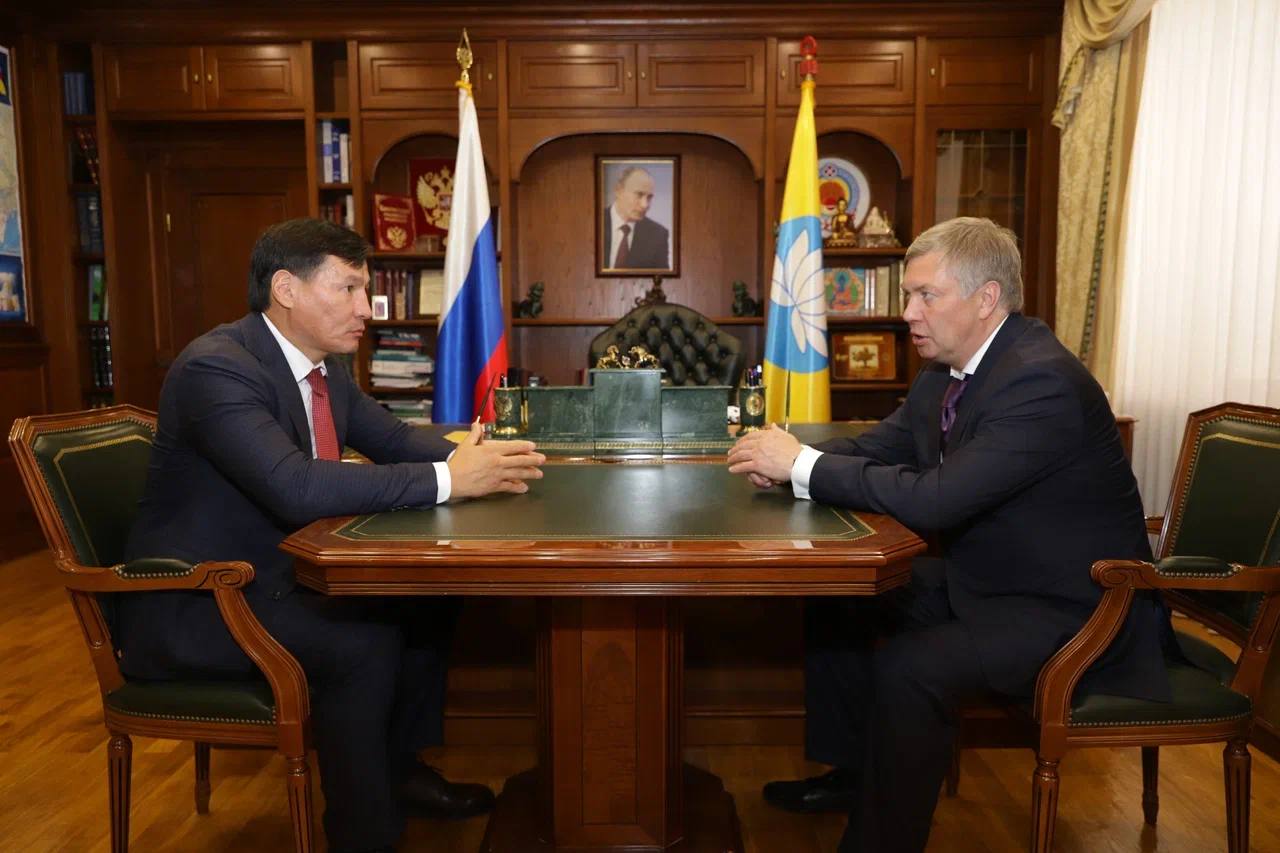 15 сентября в рамках визита делегации региона на IV Экономический форум «Элиста-2023» состоялась встреча Губернатора Алексея Русских с главой Республики Калмыкия Бату Хасиковым.