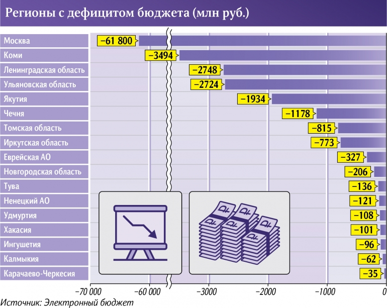 Даже с учетом помощи из федерального бюджета, самый большой дефицит по отношению к доходам за I квартал 2021 — в Ульяновской области (–20%). Столько же в республике Коми, чуть лучше ситуация в Еврейской автономной области (–13%). Эти показатели рассчитала экономист Наталья Зубаревич по просьбе "Известий" на основе данных "Электронного бюджета". В общем доходы всех субъектов составили свыше 3 трлн рублей, а расходы составили 2,85 трлн - профицит составил 150 млрд рублей. Итоги аналогичного периода 2020 года были практически аналогичны, с профицитом в 300 млрд рублей. Доходы составили 2,7 трлн рублей, а расходы — 2,4 трлн.