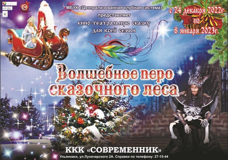 Так, в киноконцертном комплексе «Современник», расположенном на улице Луначарского, 2а, покажут сказку для всей семьи «Волшебное перо сказочного леса». В программе также – конкурсы и развлечения с участием Деда Мороза и Снегурочки и фотосессия. Посетить мероприятие можно будет ежедневно с 24 декабря по 8 января в 11:00 и 14:00.