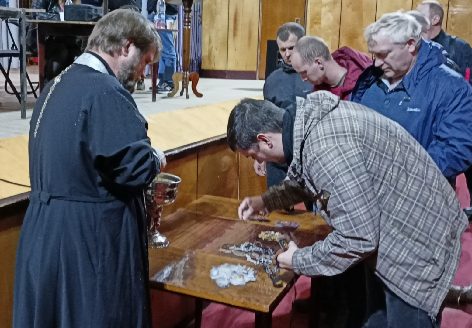После этого протоиерей благословил добровольцев, окропив их святой водой, раздал желающим иконы, нательные кресты и молитвенные пояса.