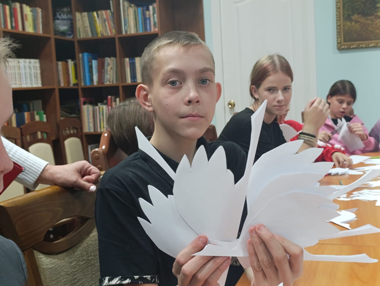 Они рассказали воспитанникам о Всероссийской акции памяти павших воинов «Дни белых журавлей», посвященной всем защитникам Отечества, не вернувшимся с полей сражений, и о символике акции – белых журавлях.