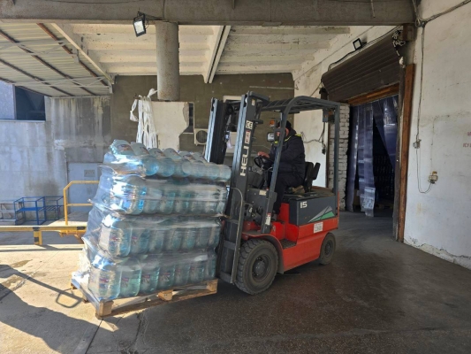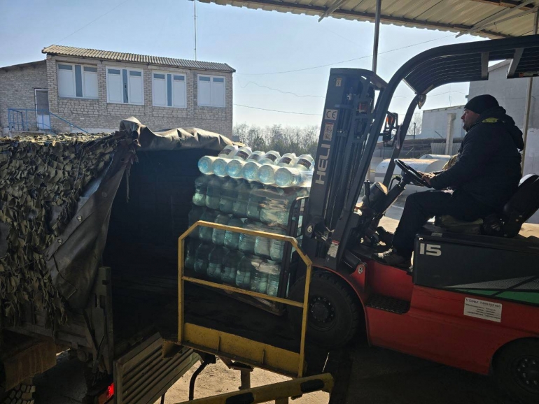 Отгрузка питьевой воды состоялась при участии Первого секретаря Херсонского областного отделения КПРФ Рамиля Замалетдинова на базе распределительного центра гуманитарной помощи.