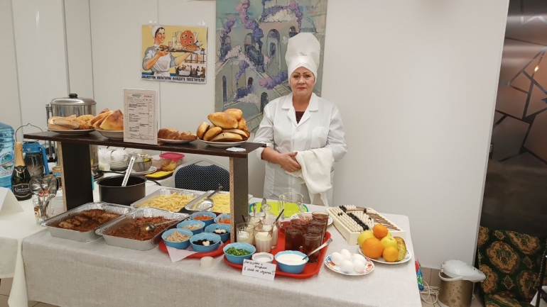 Кристина Парве вернула участников тура в советскую столовую и накормила щами и котлетами с картофельным пюре.