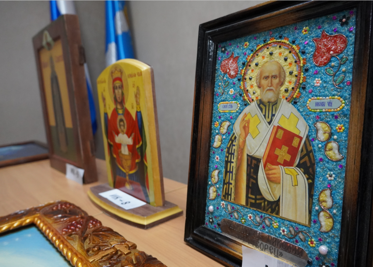 Почетное третье место принадлежит работе осужденного ИК-4 «Преподобный Гавриил Мелекесский», выполненной маслом.