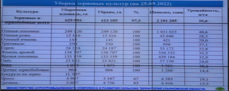 Валовый сбор составил 2,18 млн тонн - это наивысший показатель за последние 30 лет. Урожайность достигла 36 центнера с гектара - такого не было в Ульяновской области никогда.