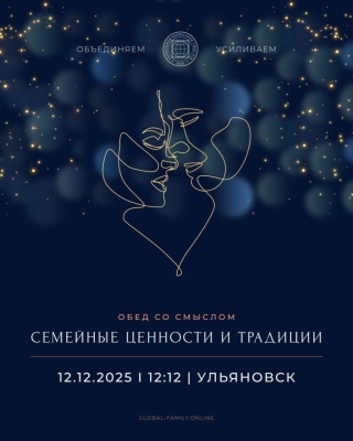 12 декабря в 12:12 в Ульяновске пройдет благотворительное мероприятие «Семейные ценности и традиции» (18+). Семейные пары из разных городов и стран сядут за один большой стол, чтобы объединиться и усилить друг друга, обменяться опытом и сделать доброе дело для детей из малообеспеченных и многодетных семей.