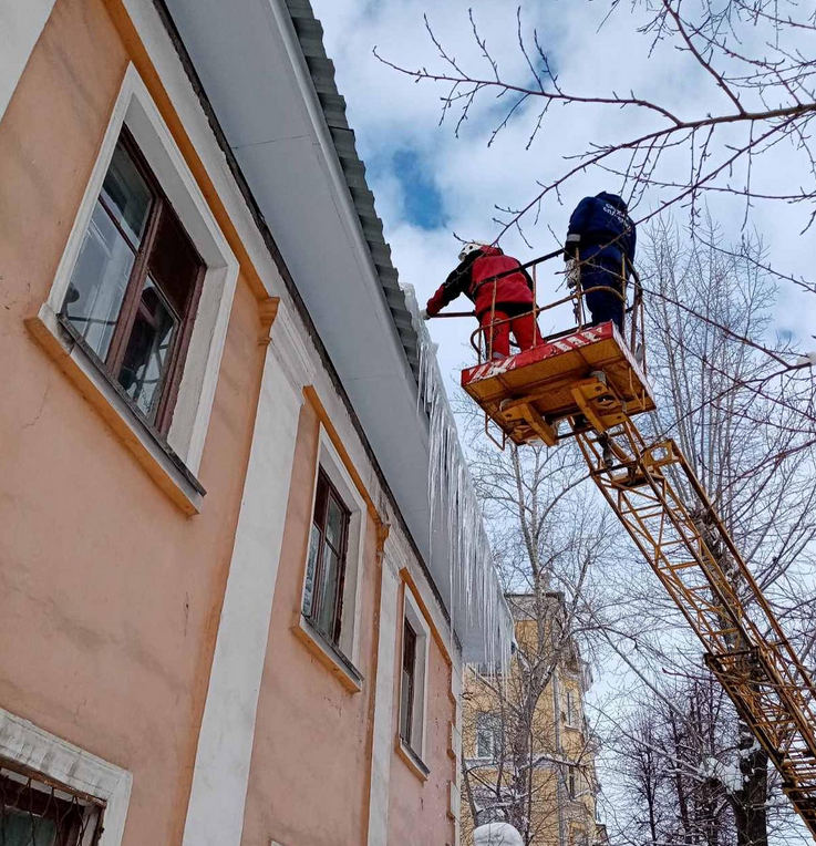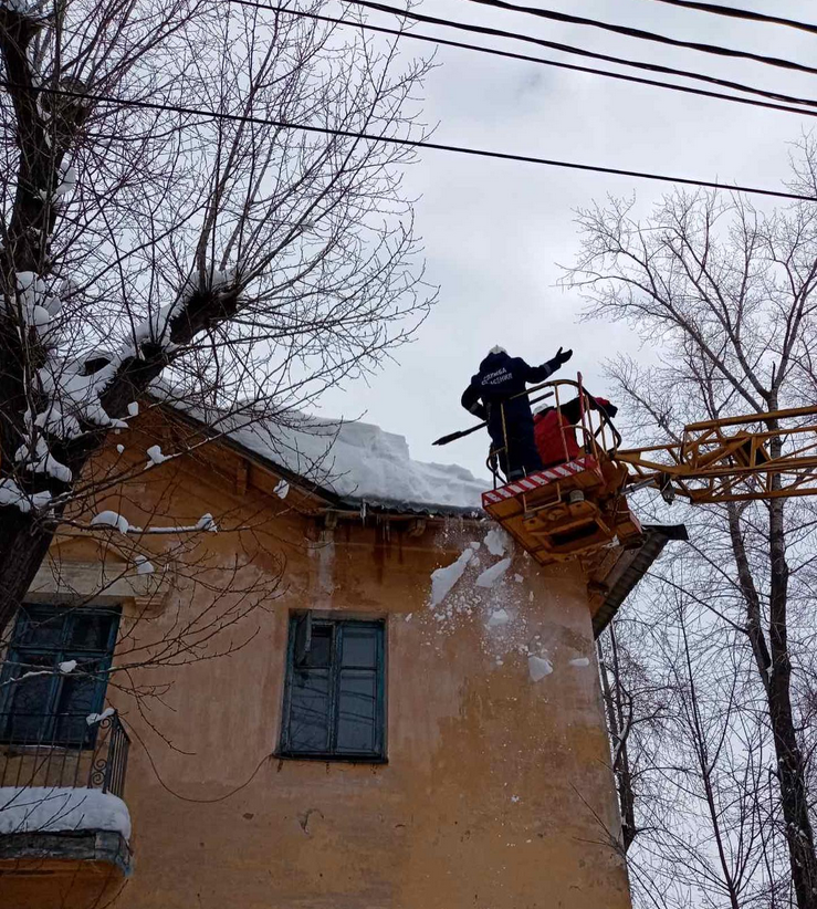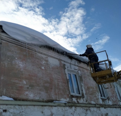 В связи с большим количеством обращений горожан спасатели очистили кровли многоквартирных домов от снега и льда.