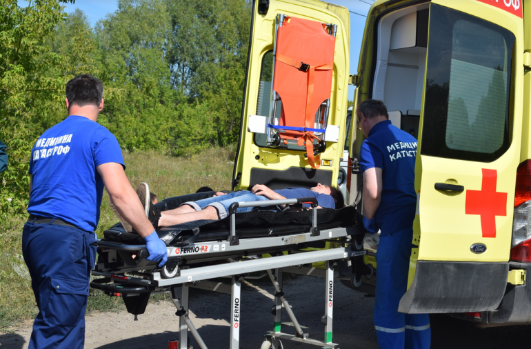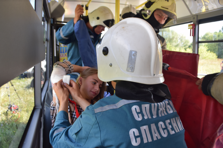 Сотрудники Главного управления МЧС по региону и спасатели Управления гражданской защиты эвакуировали условных пострадавших, роль которых играли студенты колледжа государственной и муниципальной службы, оказывали им первую медицинскую помощь, а затем передавали в руки сотрудников Центра медицины катастроф.