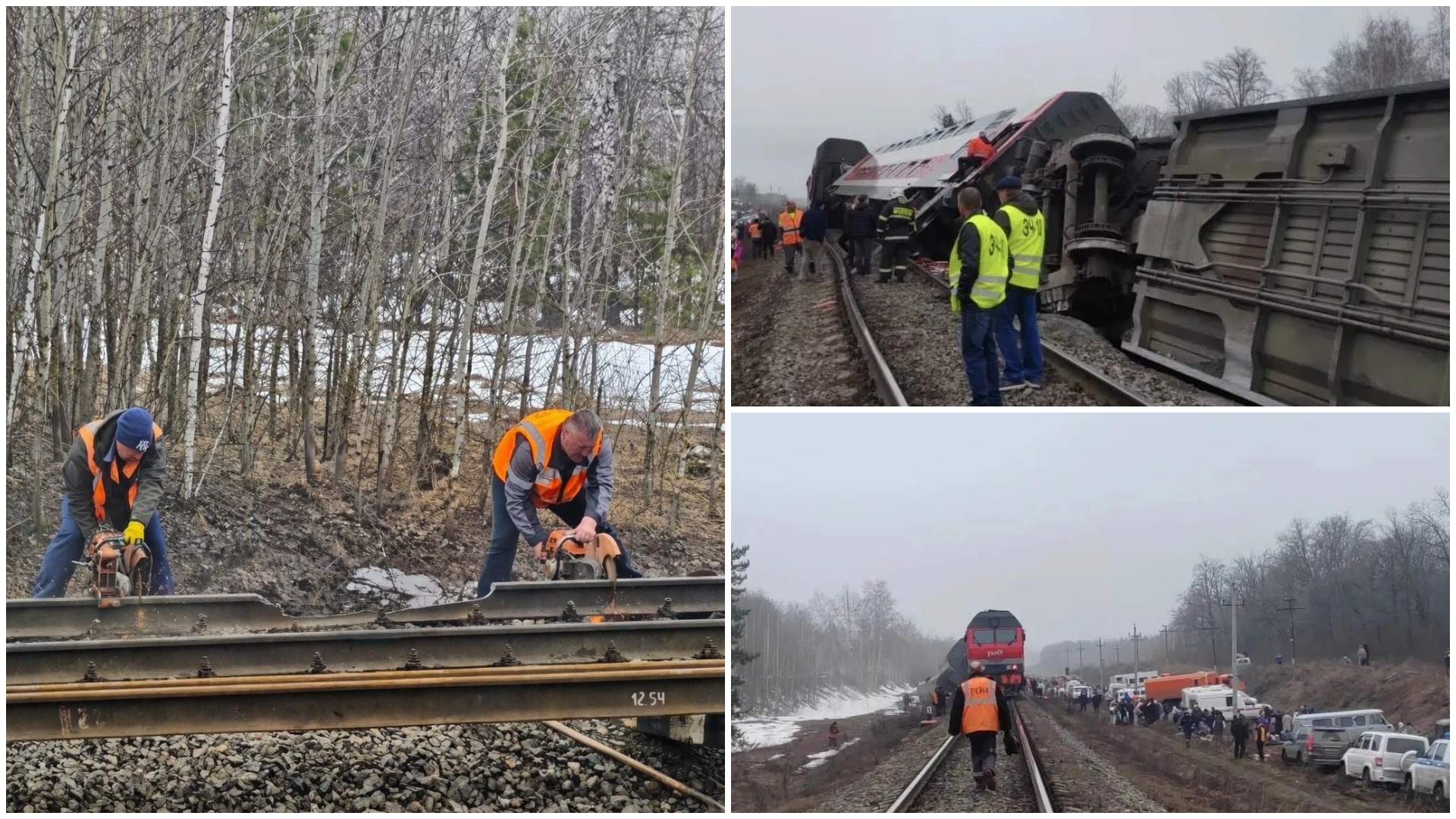 Предварительная причина ЧП — излом рельса. На месте уже работают специалисты, которые устраняют поломку. Выглядит это жутко.