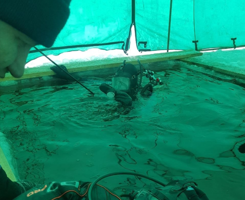 - Толщина льда и количество выпавшего снега позволили провести занятия на Волге на расстоянии 30 метров от берега на глубине 8 метров. Первостепенной задачей прошедшей тренировки стало поддержание физической и психологической формы водолазов, - рассказали в Управлении.