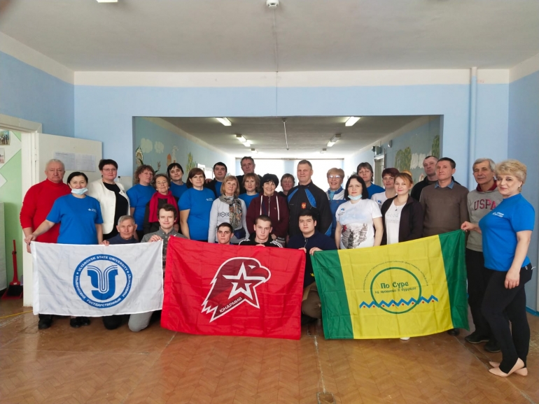 В нем приняли участие 16 человек — офицеры разных поколений, преподаватели и сотрудники УлГУ и училища олимпийского резерва, юнармейцы, ульяновские моржи.