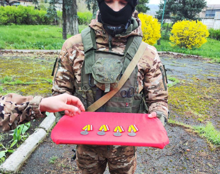 - Символично, что наградили ребят возле стелы, установленной в честь героев Великой Отечественной войны. Парни рассказали, что памятник был поврежден во время боёв. Местные жители и наши добровольцы ухаживают за ним, - рассказал Русских.