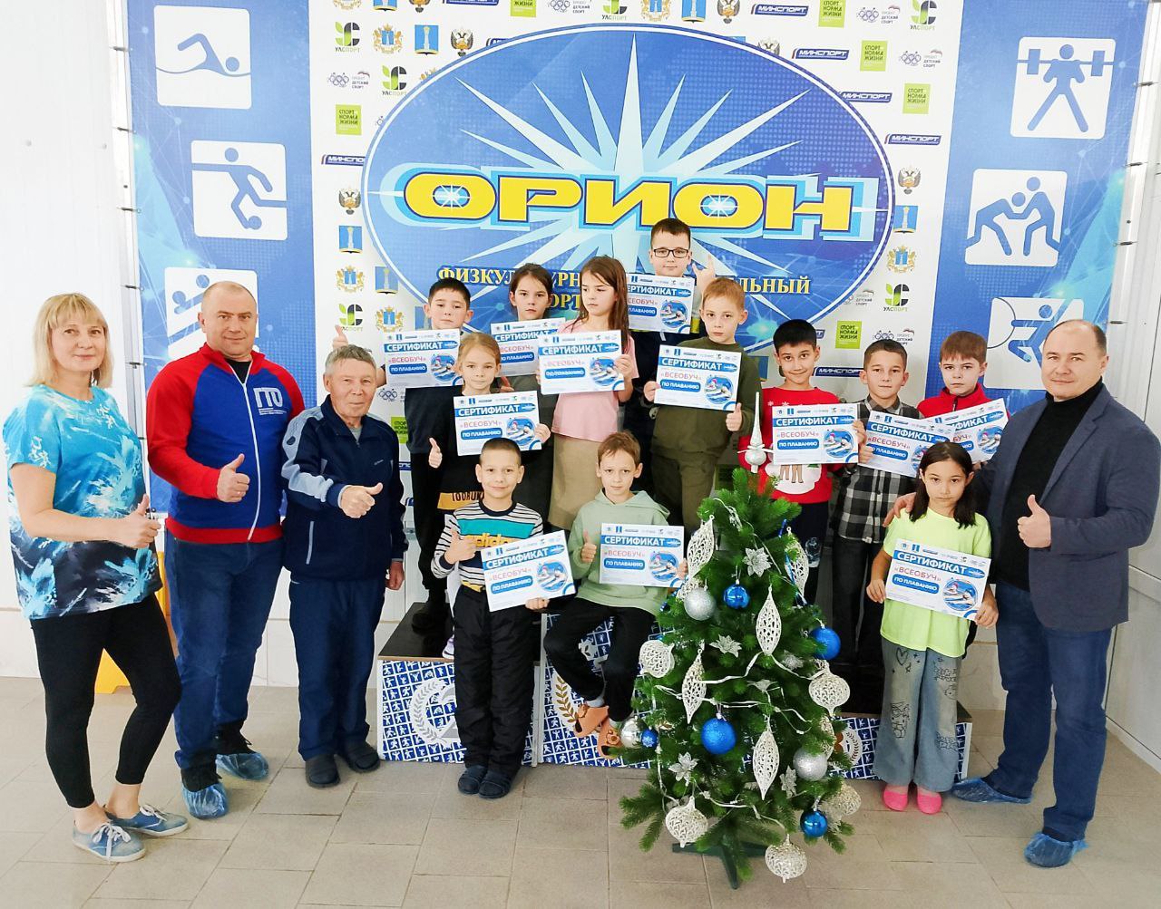 Депутат ЗСО Юрий Мухин вместе с директором оздоровительного центра «Орион» Дмитрием Кочкаревым вручили сертификаты «Всеобуч по плаванию» завершающим этот год выпускникам - учащимся 2-х, 3-х и 4-х классов школы №73 города Ульяновска .