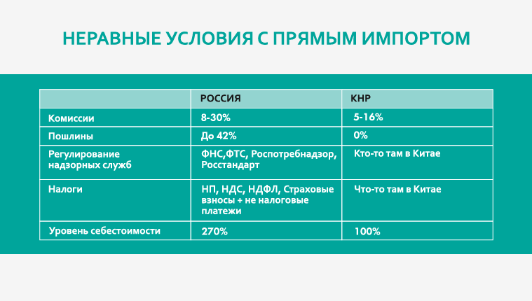 Многие производители сейчас регистрируются в Китае, Белоруссии и других странах — комиссии в этом случае ниже, уточнил Королев. При этом доход с продаж идет в страну регистрации юридического лица.