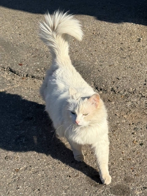 - Это - Машка, она живет в нашем дворе уже семь лет. Белоснежная красавица - любимица всех сотрудников торгового центра, её кормят и гладят, обожают и лелеют. А пушистая королева в свою очередь каждый день контролирует доставки и разгрузки, следит за рабочим процессом и, как положено представителям кошачьих, улучшает настроение сотрудников своим роскошным внешним видом, - рассказали в ЦУМе.